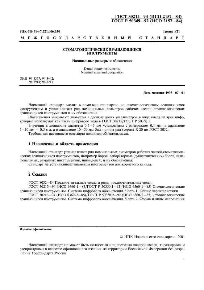 Настоящий стандарт входит в комплекс стандартов по стоматологическим вращающимся инструментам и устанавливает ряд номинальных диаметров рабочих частей стоматологических вращающихся инструментов и их обозначения