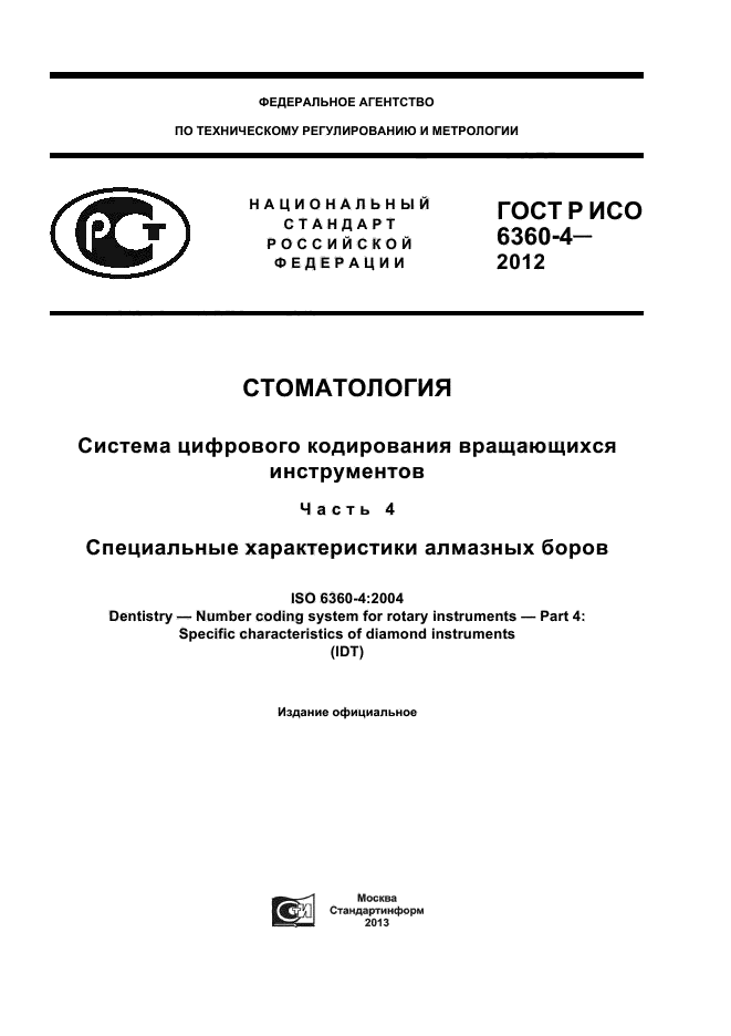 | Название на англ.: | Dentistry. Number coding system for rotary instruments. Part 4. Specific characteristics of diamond instruments |