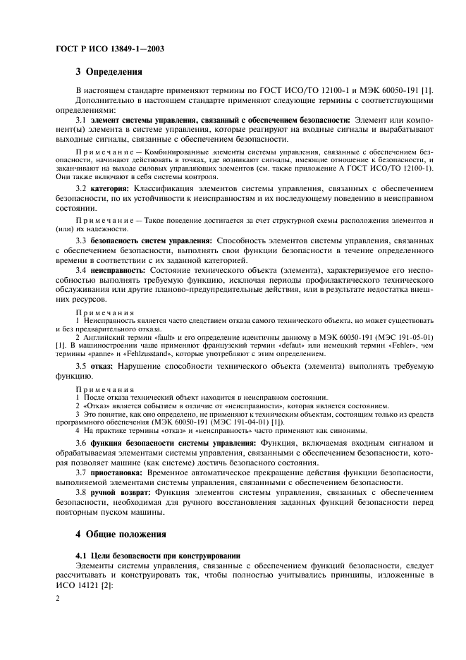 Стандарт определяет категории элементов систем управления и описывает характеристики их функций безопасности, включая программируемые системы, для любого оборудования (машины) производственного и непроизводственного назначения и для предохранительных и (или) защитных устройств, относящихся к этому оборудованию (машине).