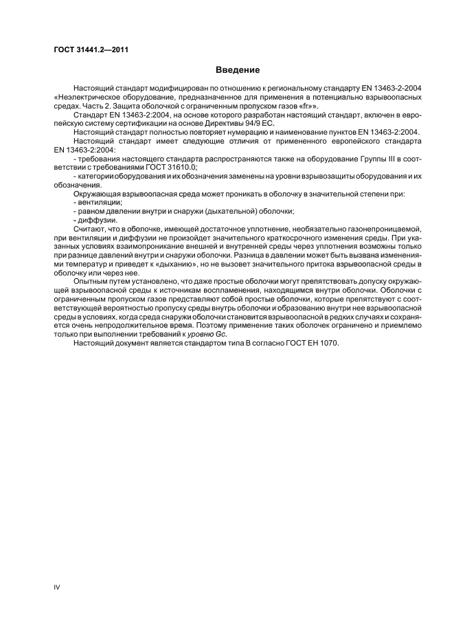 Настоящий стандарт устанавливает требования к конструкции и испытаниям оболочек с ограниченным пропуском газов для неэлектрического оборудования, предназначенного для применения в потенциально взрывоопасных средах, в условиях, когда среда снаружи оболочки становится взрывоопасной в редких случаях и сохраняется очень непродолжительное время.