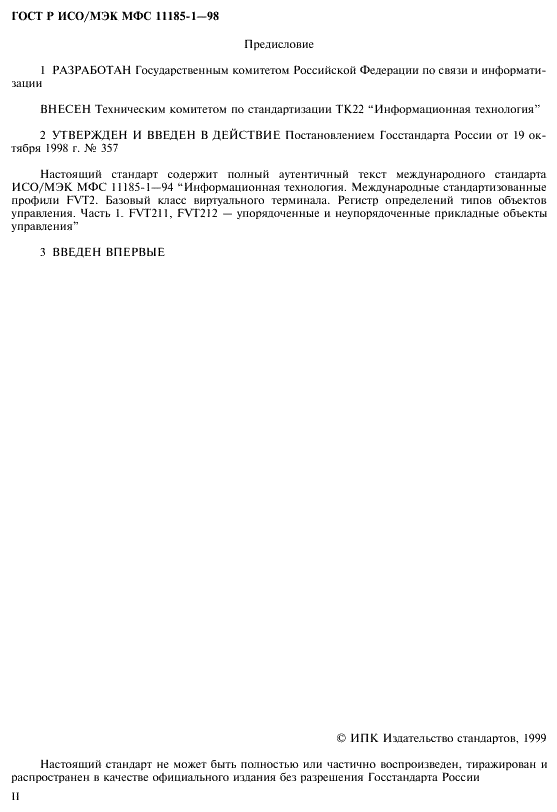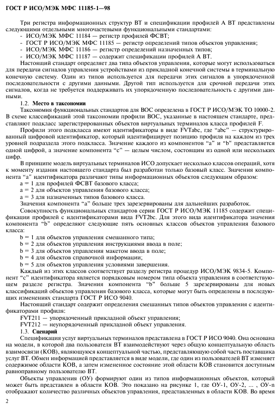 В стандарте взаимосвязи открытых систем (ВОС) ГОСТ Р ИСО 9040 по услугам виртуальных терминалов (ВТ) базового класса приведены требования к международному регистру определений типов объектов управления ВТ. Процедуры операций этого регистра представлены в ИСО/МЭК 9834-5. Настоящий стандарт содержит такой регистр. Отдельные элементы регистра образуют профили формата обмена и представления данных ( профили F), определенные в ГОСТ Р ИСО/МЭК ТО 10000-1.