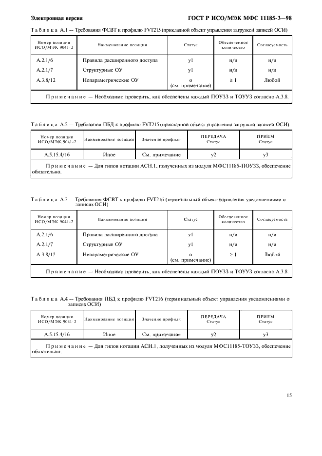 | Название на англ.: | Information technology. International standardized profiles FVT2nn. Virtual terminal basic class. Register of control object type definitions. Part 3. FVT215, FVT216 - application RIO record loading control object. Terminal RIO record notification control object |