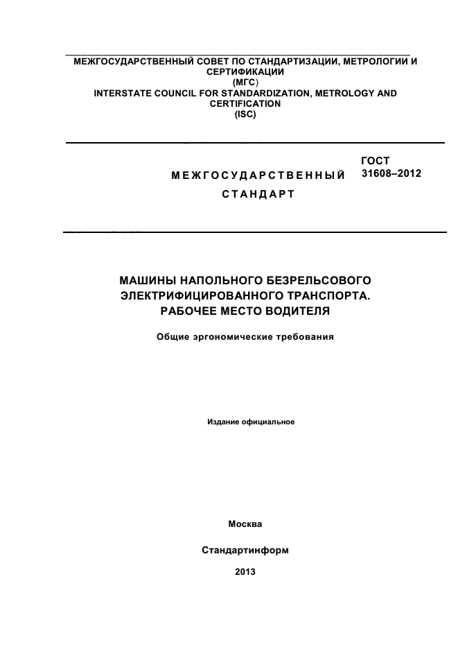 | Название на англ.: | Elektrik powered floor-mounted industrial trucks. Operator’s seat. General ergonomic requirements |
