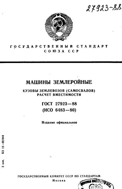 | Название на англ.: | Earth-movinz machinery. Dumper bodies. Volumetric ratinz |