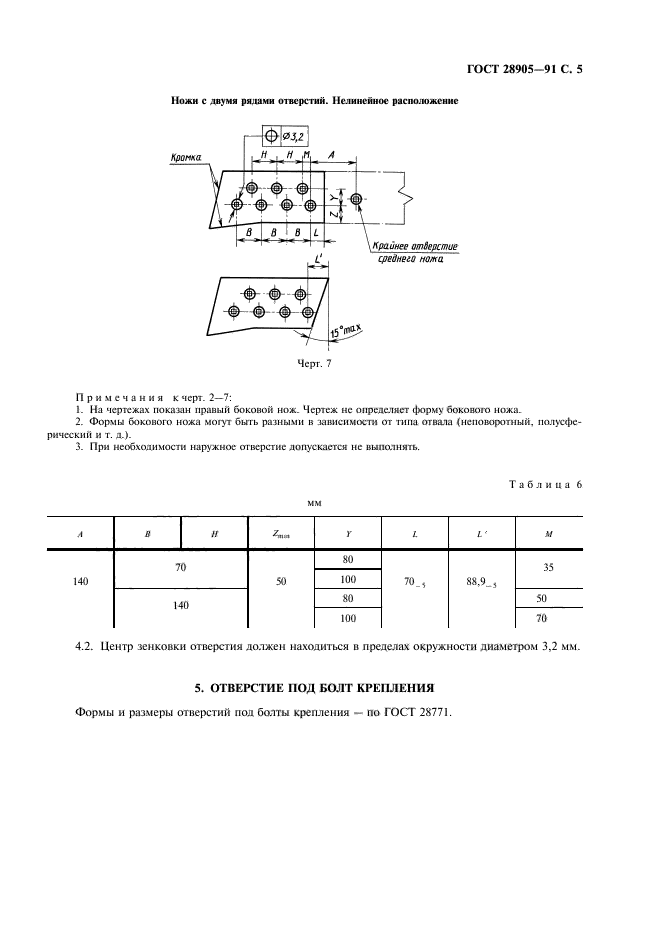 Настоящий стандарт распространяется на поворотные, неповоротные, сферические и полусферические бульдозерные отвалы и устанавливает основные требования к расположению, формам и размерам отверстий под болты крепления боковых ножей бульдозерных отвалов.