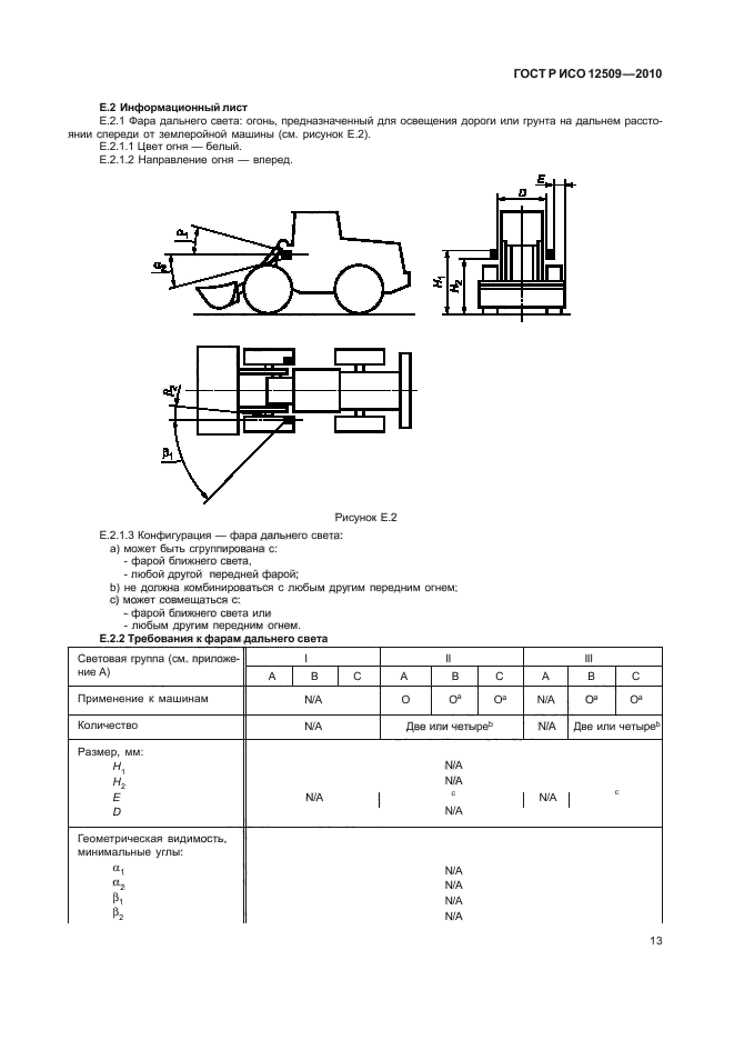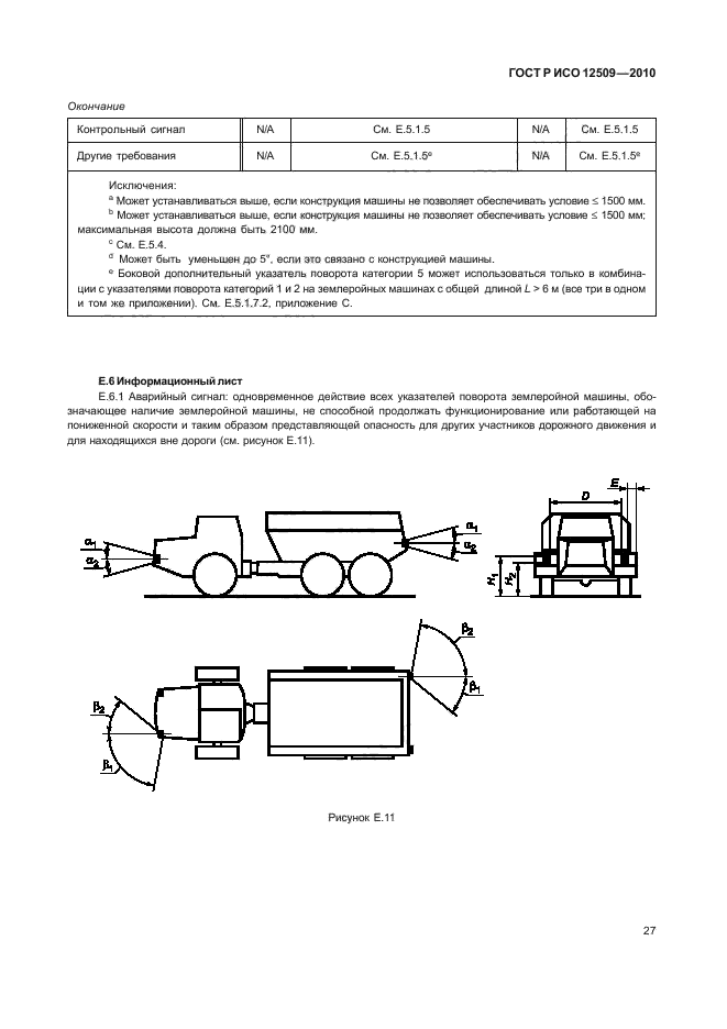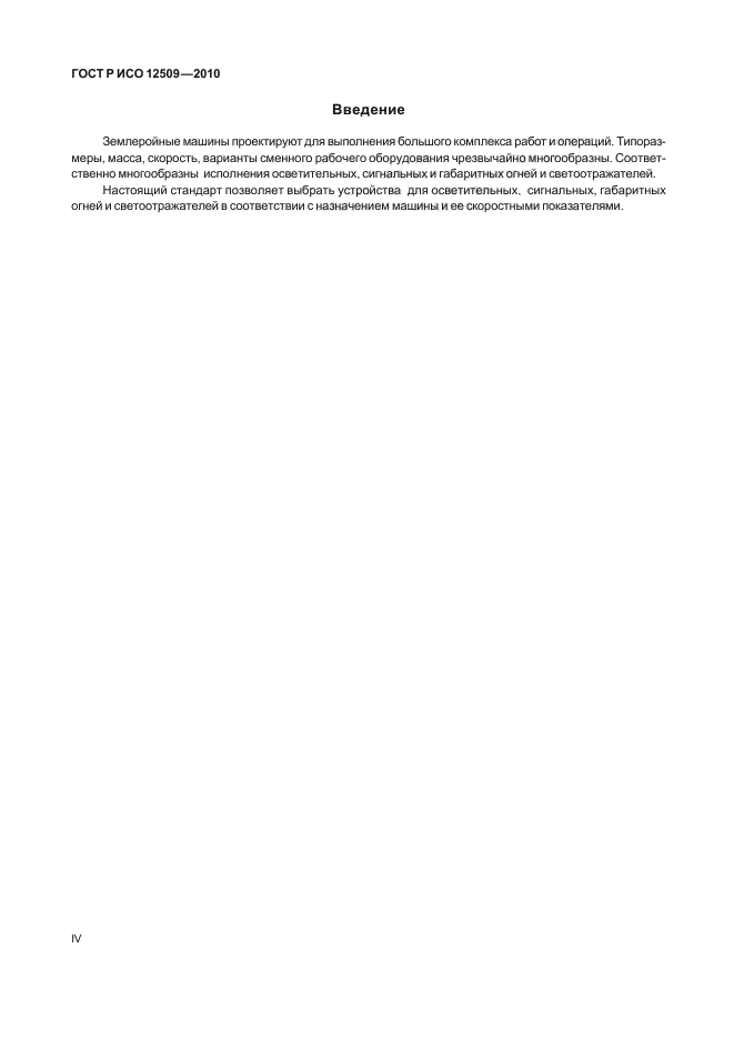 Настоящий стандарт устанавливает минимальные требования к установке и исполнению осветительных, сигнальных и габаритных огней и светоотражателей для землеройных машин. Настоящий стандарт применим для самоходных колесных и гусеничных землеройных машин (как это определено ИСО 6165), предназначенных для использования как на дорогах общего пользования, так и вне их.