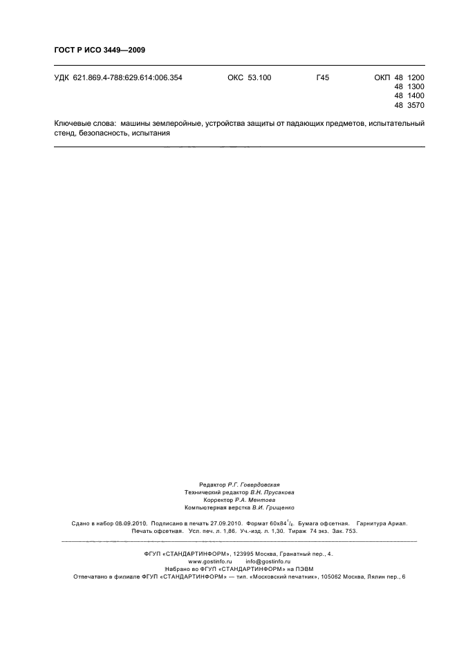 | Название на англ.: | Earth-moving machinery. Falling-object protective structures. Laboratory tests and performance requirements |