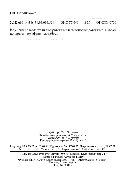 | Название на англ.: | Alloyed and high-alloyed steel. Atomic emission spectrometry method of determination of tungsten and molibdenum |